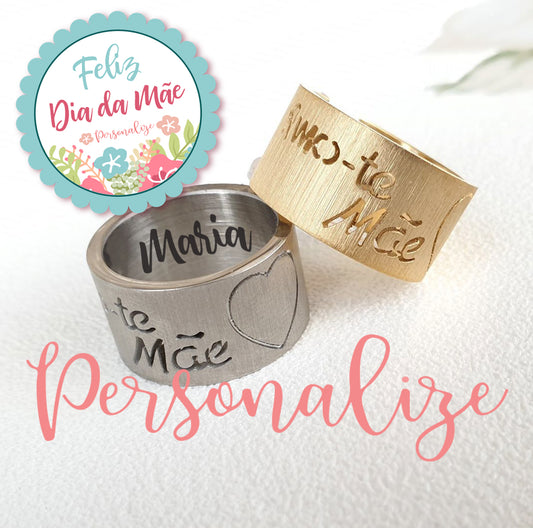Anel aço inox escovado "Amo-te mãe"