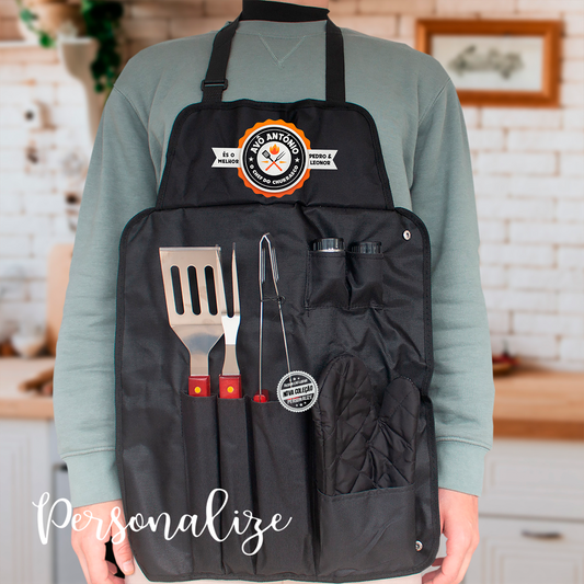 Avental com kit de churrasco " Pai, o chef do churrasco"