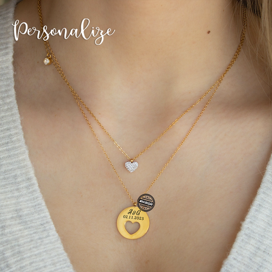 Fio duplo corações "Iniciais & data"