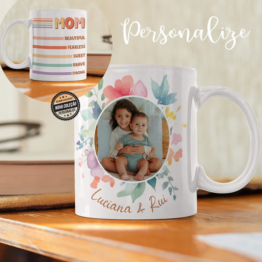 Caneca " adjetivos "Mãe/Mom"