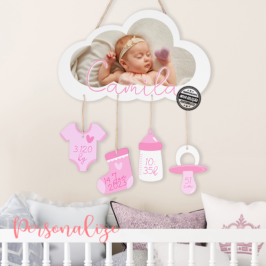 Moldura nuvem com pendentes "Dados de Nascimento"