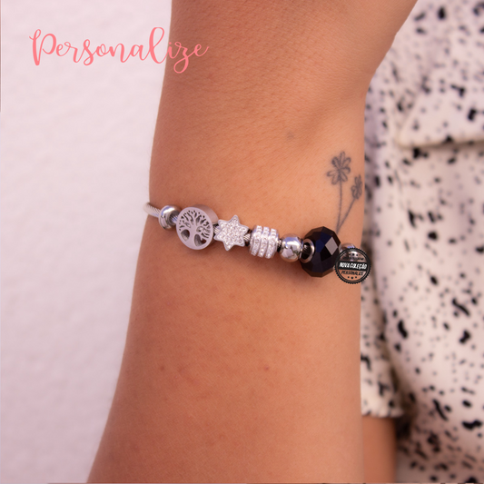 Pulseira ajustável trevo e árvore da vida "Nome"