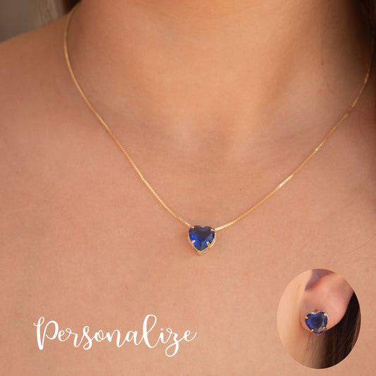 Conjunto fio e brincos de pedra natural e banho de ouro de 18k "Coração"
