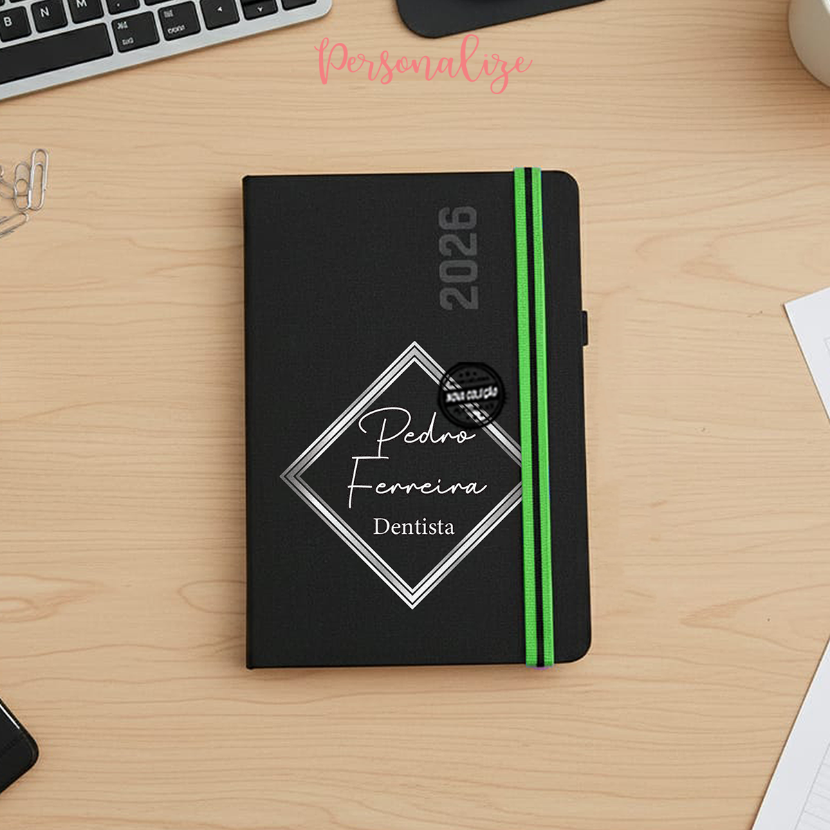 Agenda de capa rígida diária de 2026, tamanho A5 com elástico.
