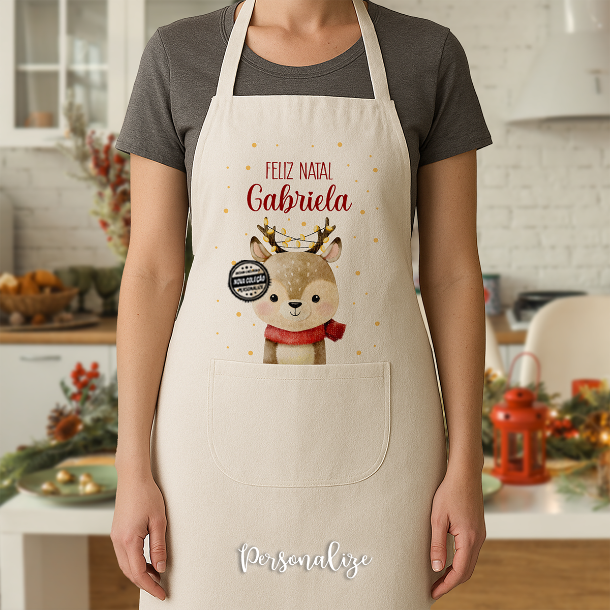 Avental rena "Feliz Natal"