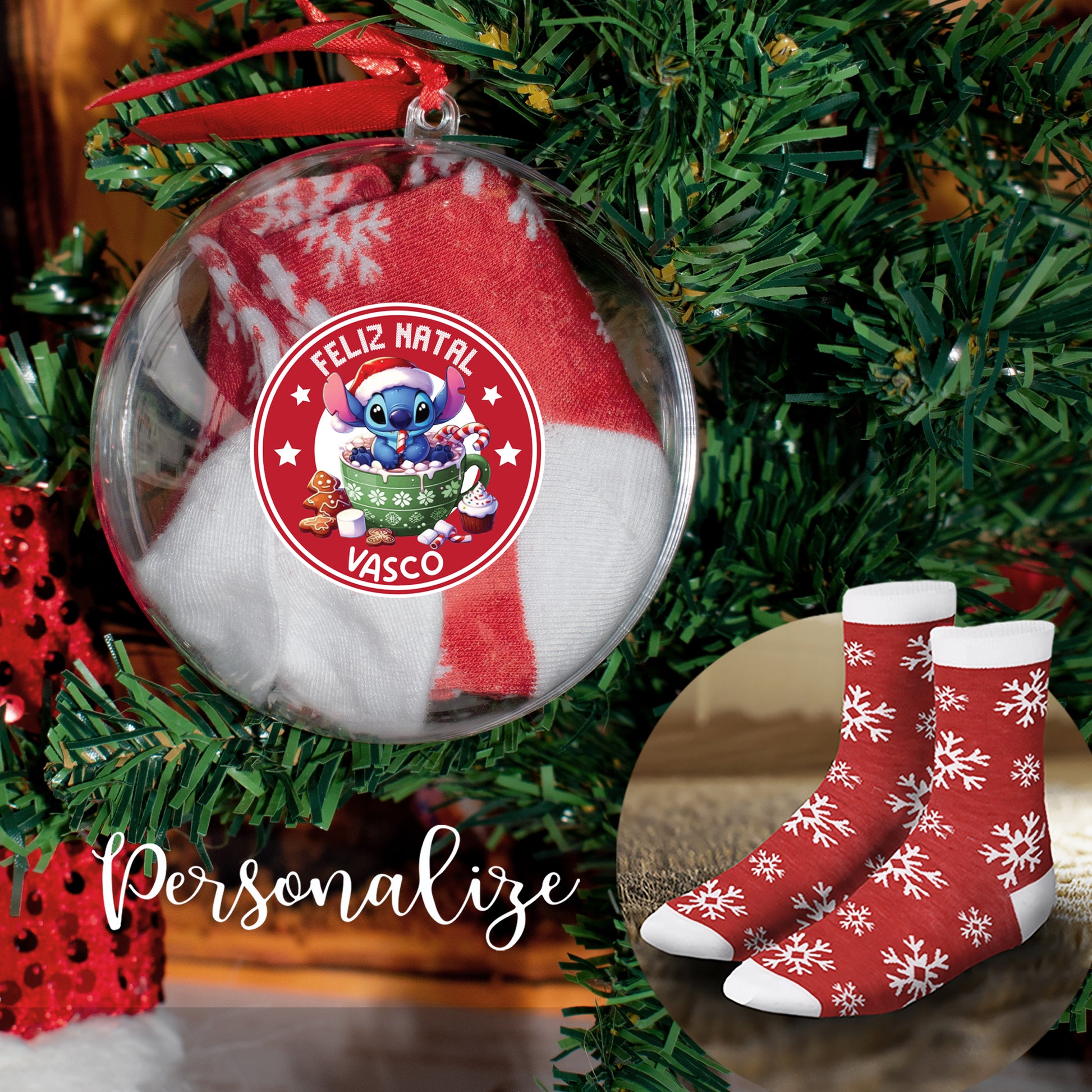 Bola de natal " stitch" com meias macias e quentinhas do tamanho 36 ao 44 com padrão de Natal. Um presente original e económica para oferecer.