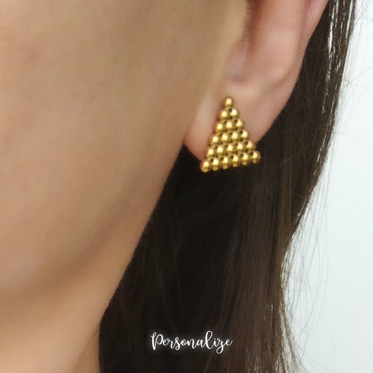 Brincos triângulo bolinhas