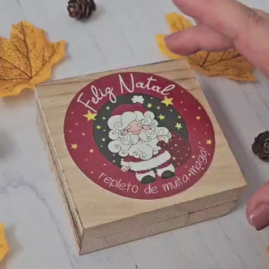 Caixinha de Madeira feliz Natal com Coração em Gesso 💖