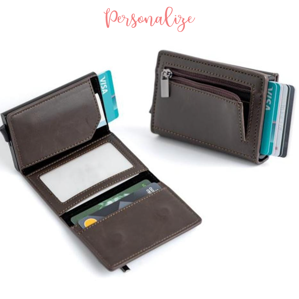 Inclui porta-cartões com proteção RFID, permitindo guardar até 6 cartões, acessíveis com apenas um clique.