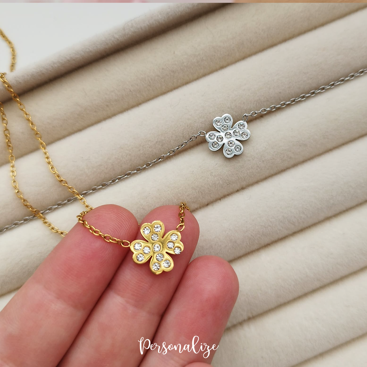 Traga a sua sorte sempre ao peito. Disponível em dourado ou prateado.