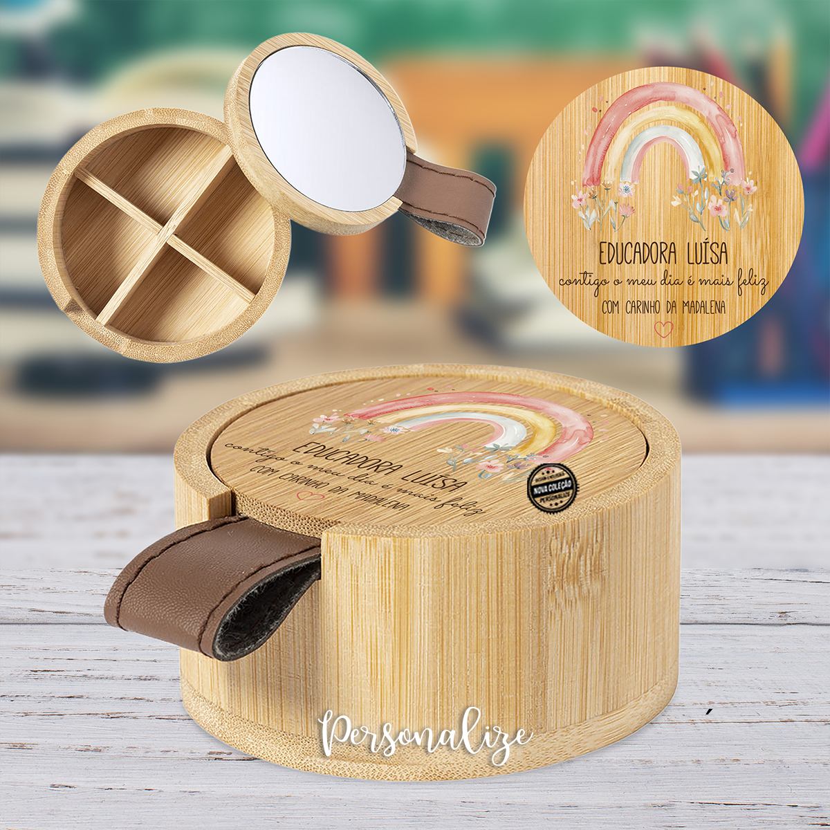 Para aquelas mulheres incríveis que todos os dias cuidam, ensinam e inspiram com o coração criámos uma coleção super especial personalizada por si para professoras, auxiliares, educadoras ou para alguém especial , com um arco-íris amoroso que simboliza carinho, paciência e dedicação.