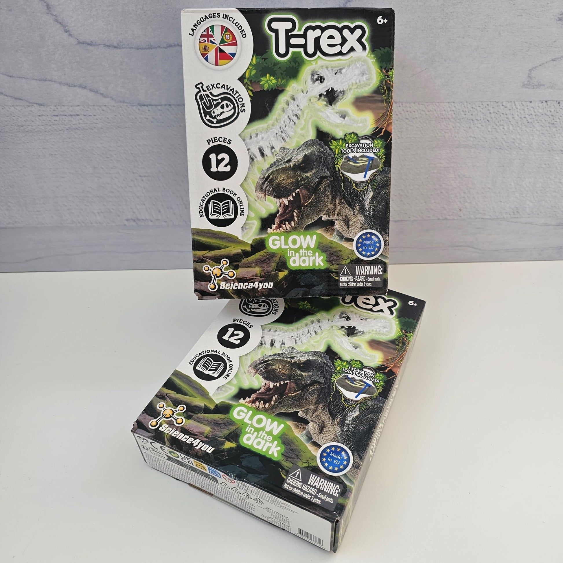 Kit de escavações fósseis para escavar e montar um fóssil de T-rex. Diverte-te enquanto aprendes as melhores técnicas de escavação e o que causou a extinção dos dinossauros.