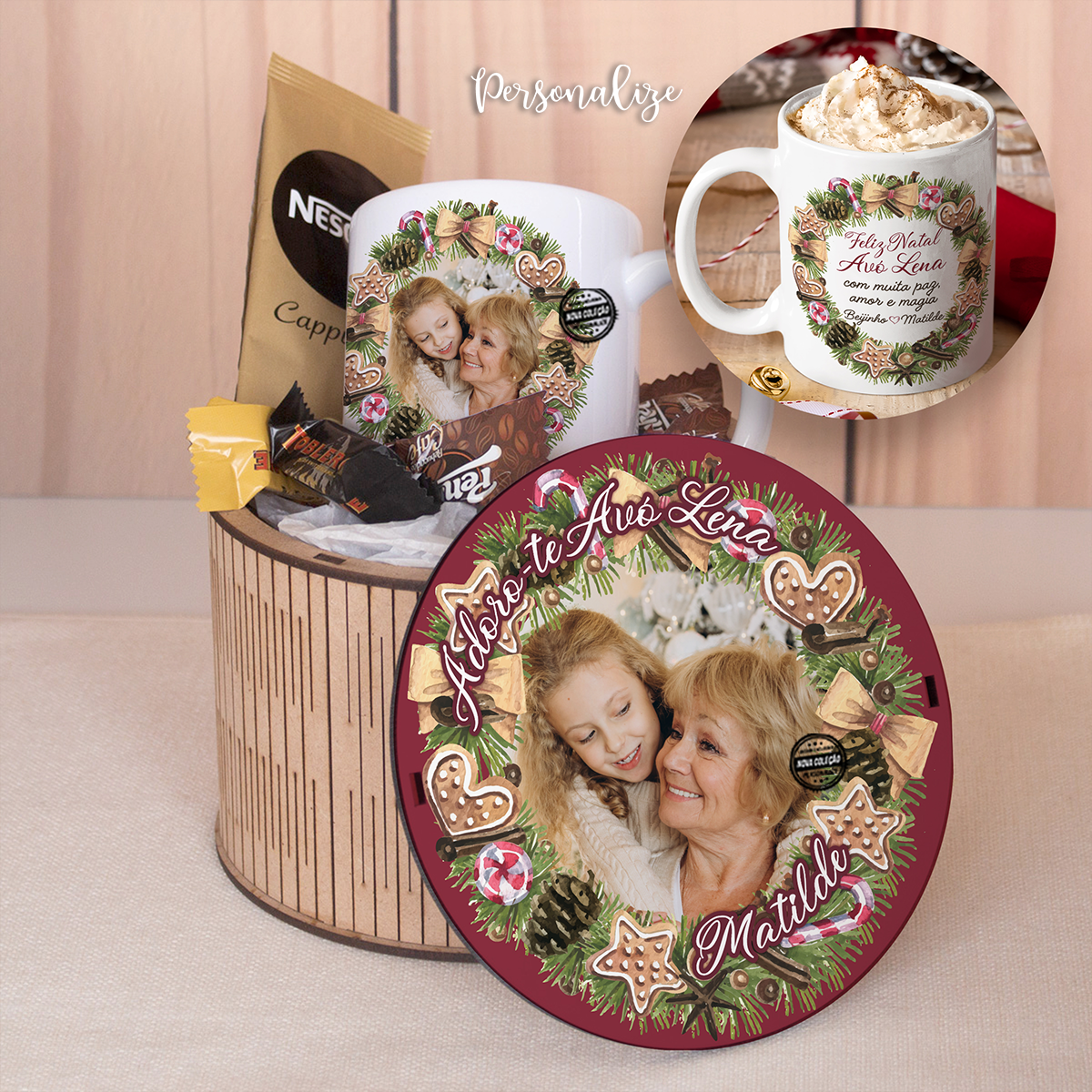 Kit caixa de Natal "Grinalda - Feliz Natal", ideal para quem adora o espírito natalício e quer levar um toque festivo para o dia-a-dia, seja num presente, numa decoração especial ou num acessório único.