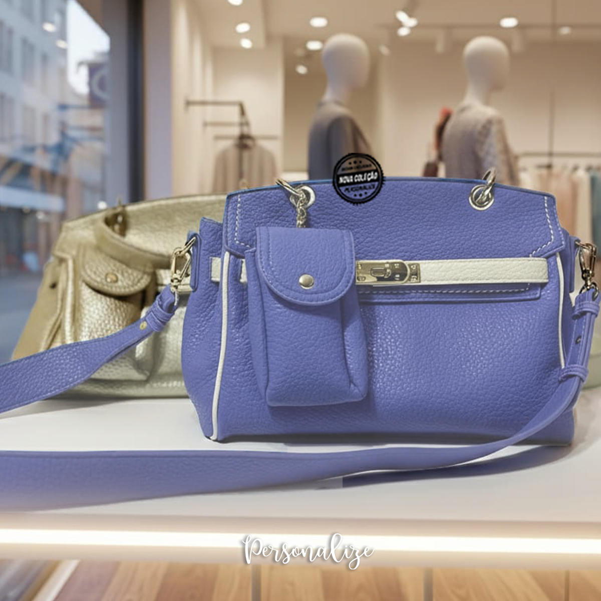 Mala com alça larga regulável em dois tamanhos, inclui bolsinha exterior.