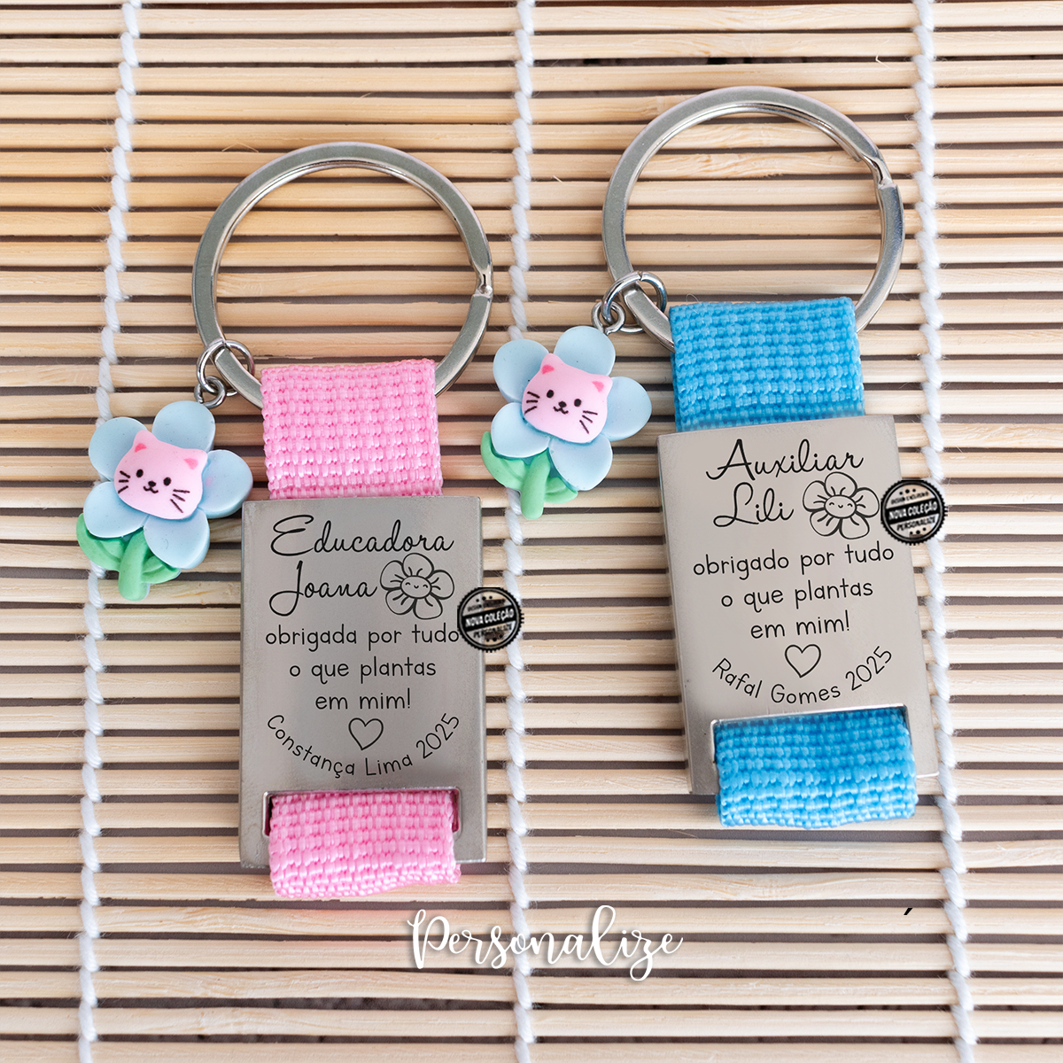 A nossa coleção personalizada para educadoras é uma verdadeira homenagem a quem dedica o seu tempo a ensinar e cuidar com tanto carinho. Com um design colorido e alegre, cada peça traz a frase especial: "Obrigada pelo que plantas em nós" — um tributo ao trabalho incrível que faz florescer o melhor em cada criança.