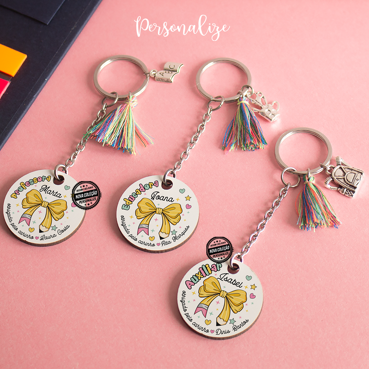 Com um design encantador de laço em forma de lápis, estas peças são perfeitas para demonstrar toda a gratidão e reconhecimento por quem ensina com tanto amor. Tudo personalizado como e para quem quiser e uma mensagem especial à sua escolha!