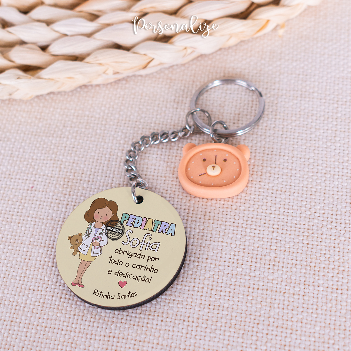 Porta chaves pediatra "Obrigado por todo o carinho e dedicação!" com pendente em formato de ursinho super amoroso que dá um toque único e especial!