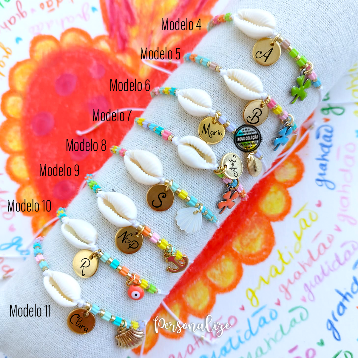 Encontre na nossa coleção de verão pulseiras, fios, tornozeleiras e conjuntos feitos com materiais resistentes como aço inox e pedras naturais, aliados a pendentes cheios de charme — búzios, corações, trevos, símbolos do mar e muito mais.