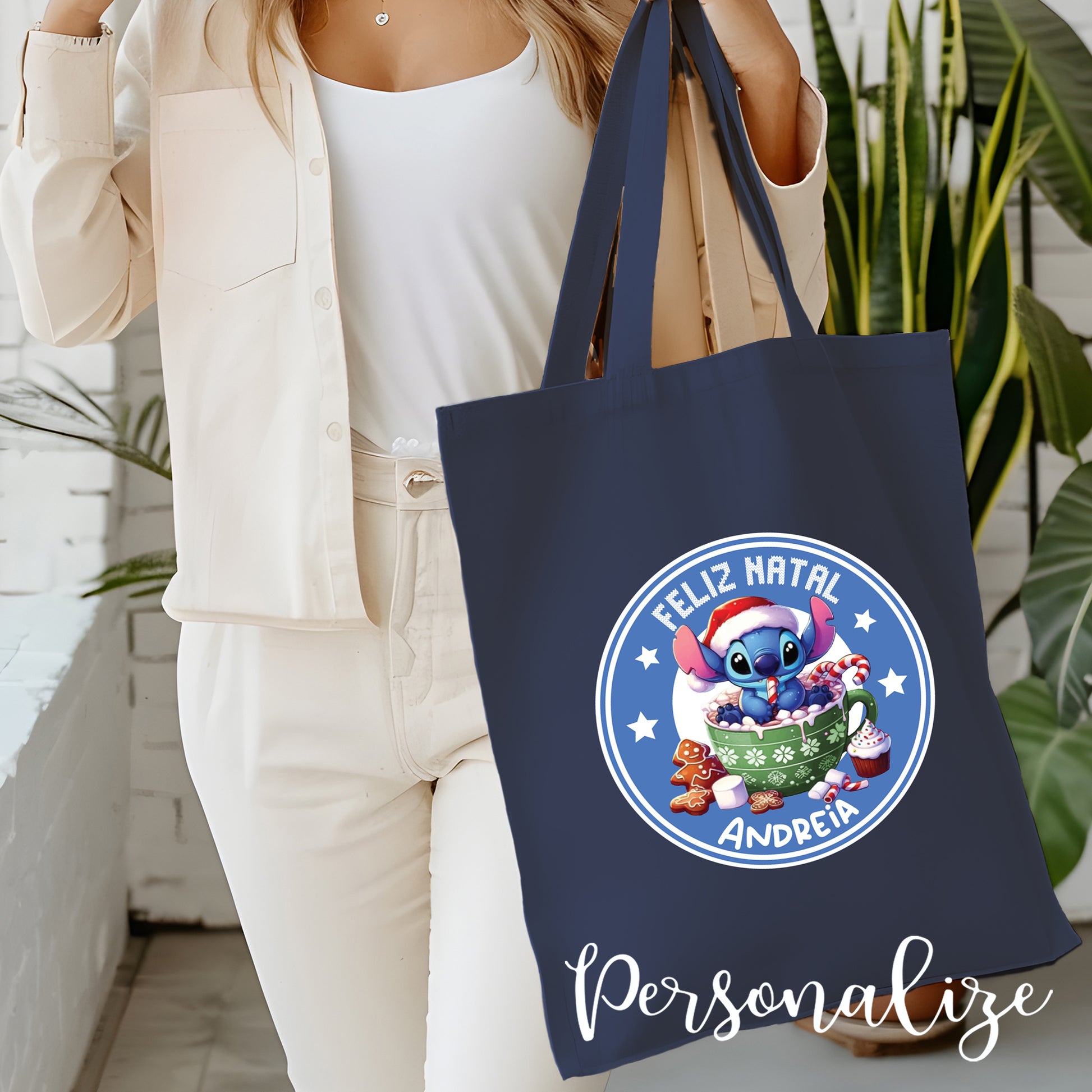 Saco "Feliz Natal" em azul marinho, totalmente personalizado por si.